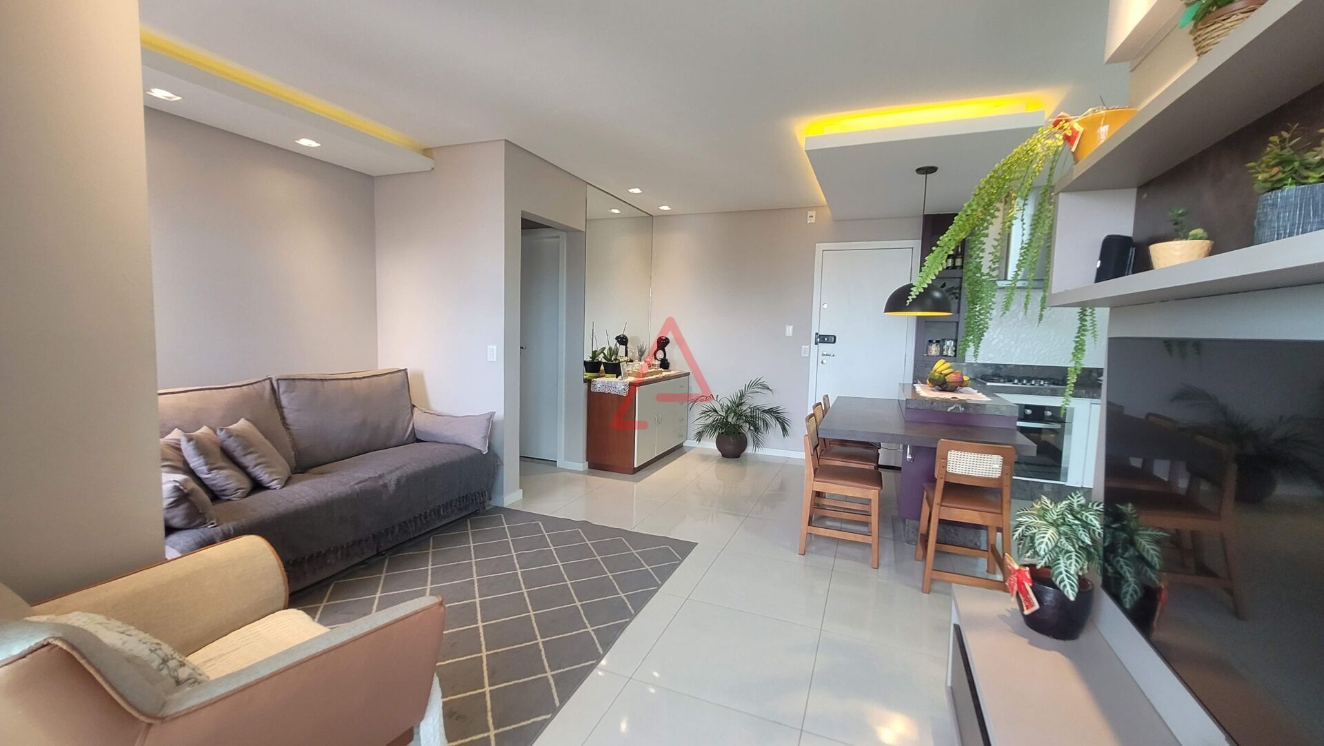 - Sala ampla e estendida, ideal para criar dois ambientes