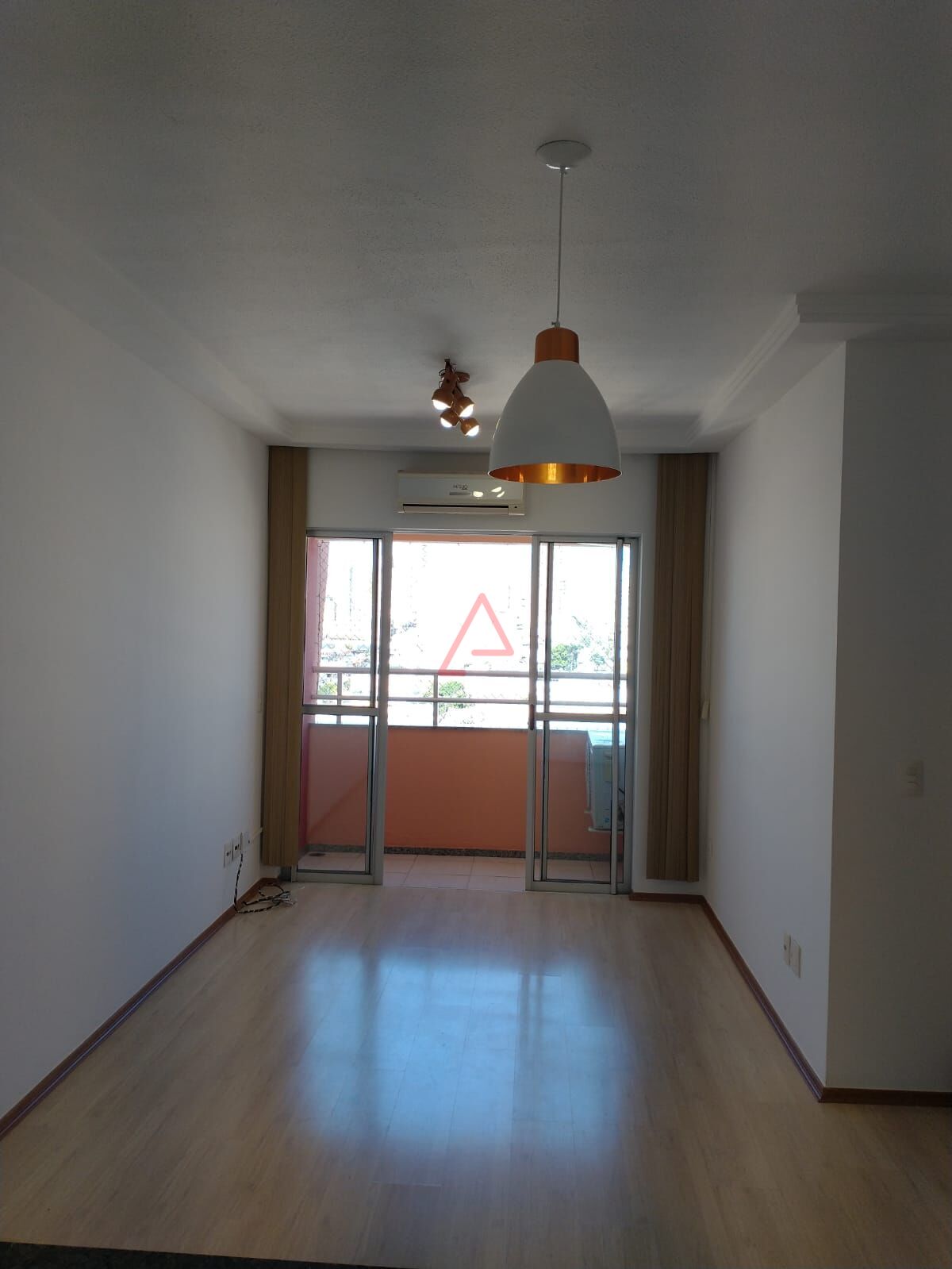 Apartamento com três quartos sendo um suíte, banheiro social, os dois banheiros com chuveiros eletrônicos, cozinha com armários, sala com luminárias, piso laminado e ar-condicionado na sala, sacada.