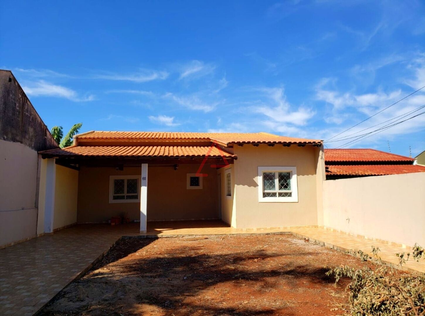 Casa com amplo quintal na frente, 3 quartos, sala, cozinha, banheiro, lavanderia.