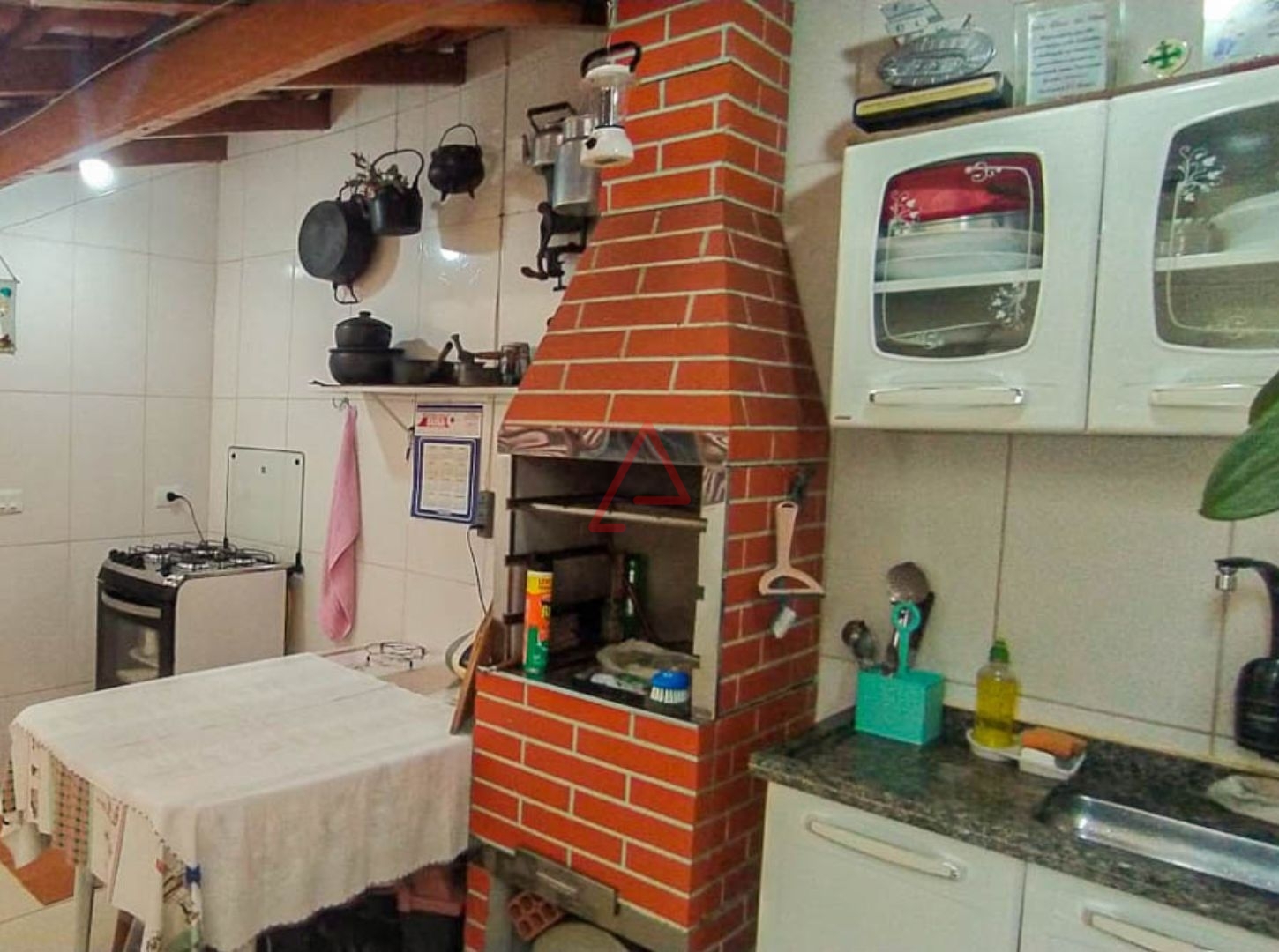 Casa Geminada com 3 quartos (1 suíte), sala, cozinha planejada, banheiro social, fundo com cozinha, churrasqueira e dispensa, corredor lateral para fundos.