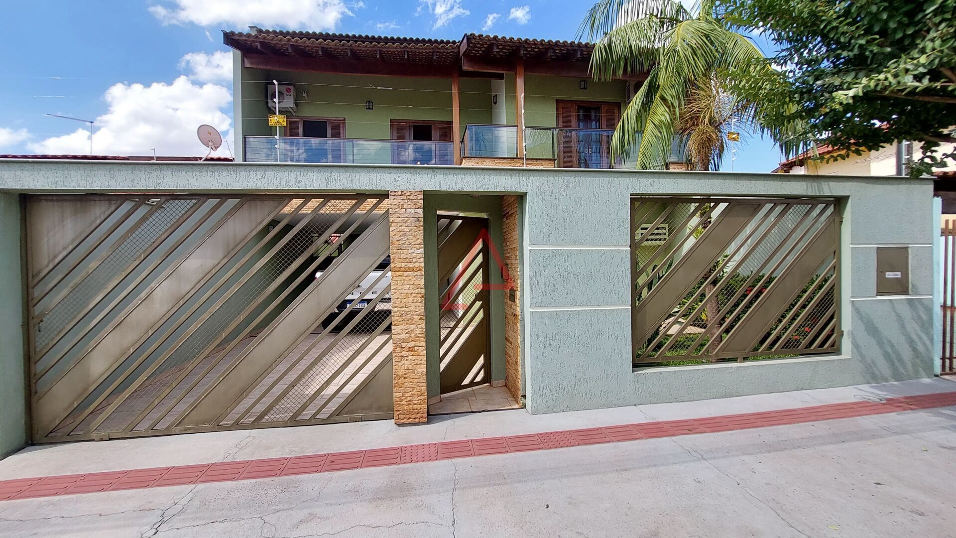 Piso superior: 3 quartos com armários e ar-condicionado (sendo 1 suíte com hidro e sacada, e 1 dormitório com sacada), hall e sala com sacada e 1 banheiro social.