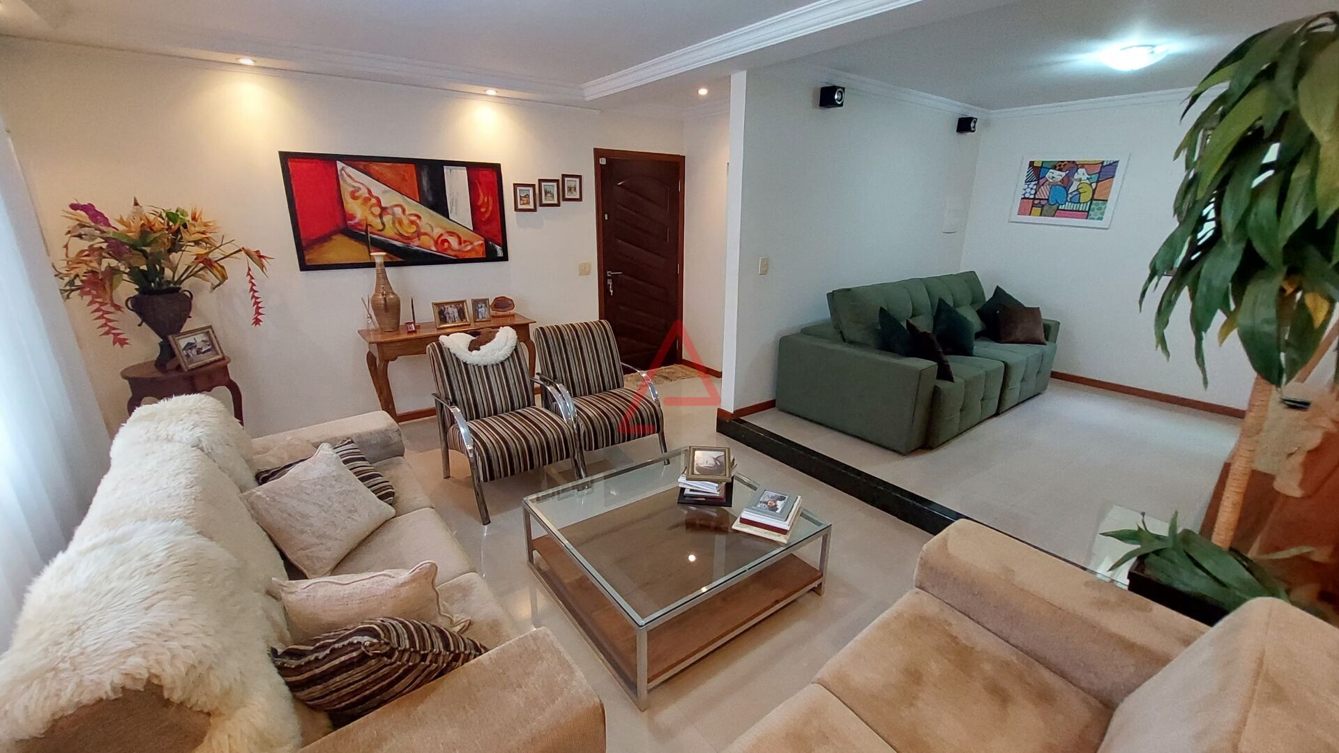 Piso inferior: ampla sala em 2 ambientes com ar-condicionado, lavabo, copa com jardim de inverno, cozinha com armários planejados, cooktop e coifa, amplo quintal com espaço gourmet, 1 banheiro, despensa, área de serviço e garagem.
